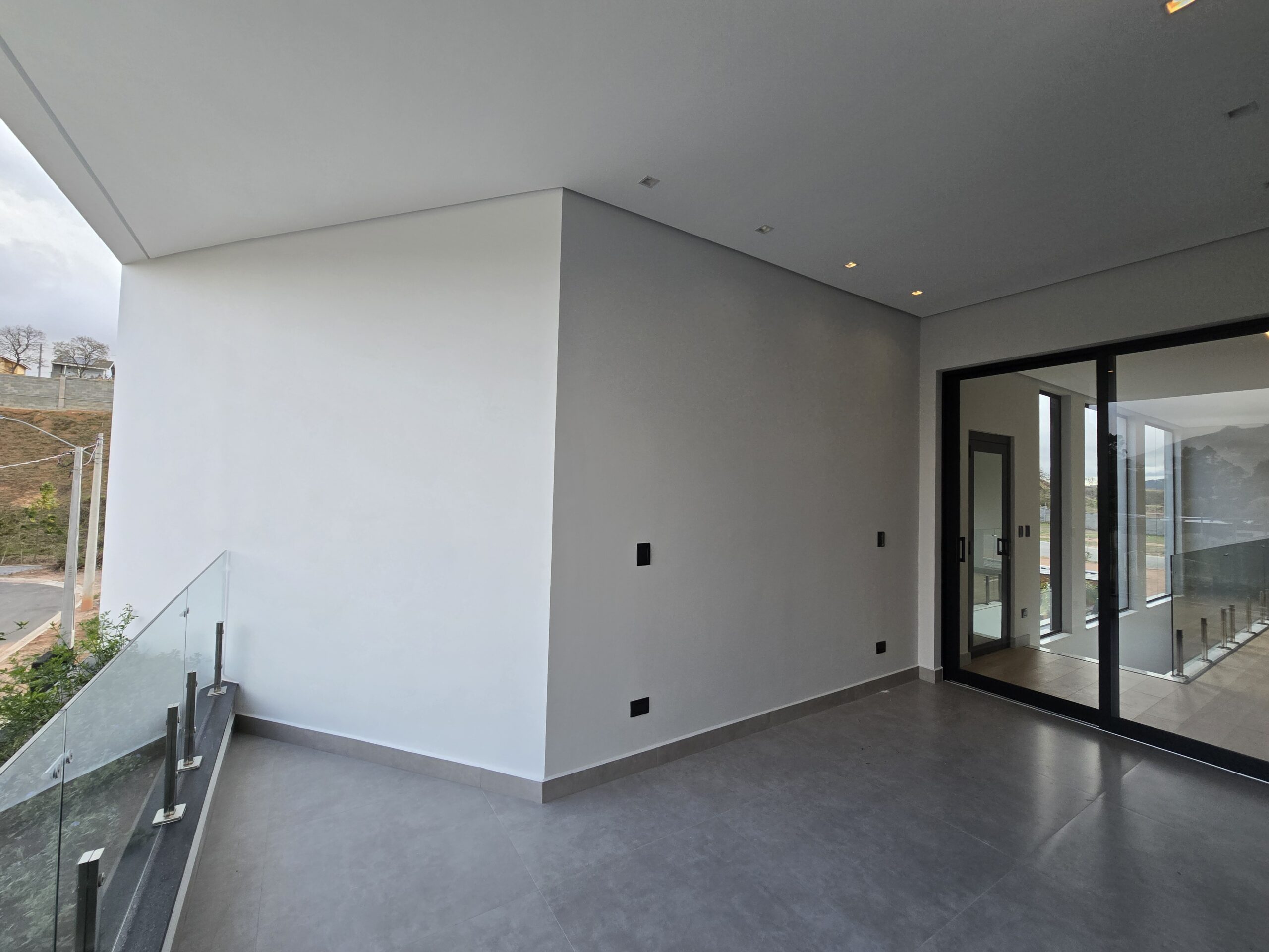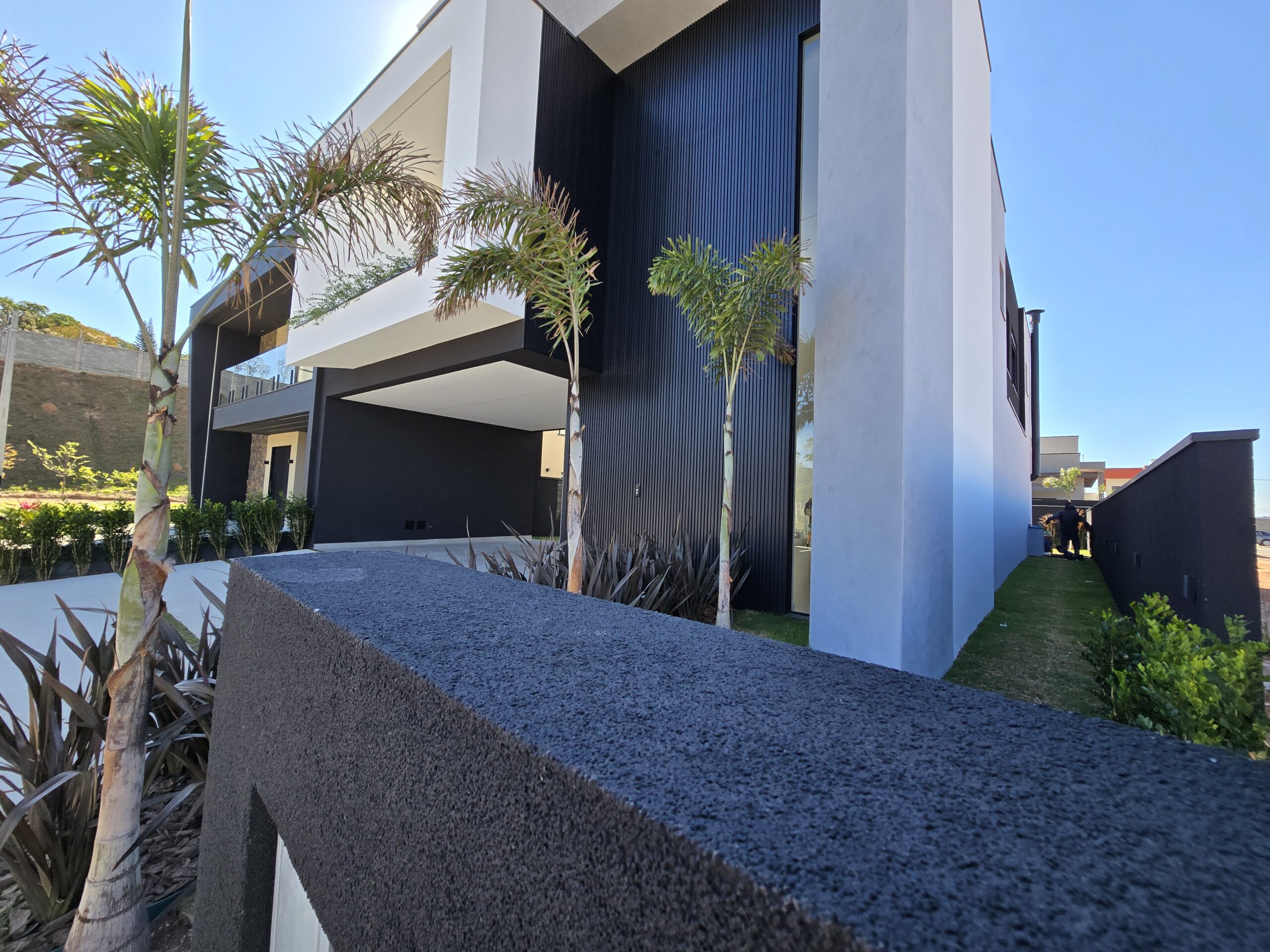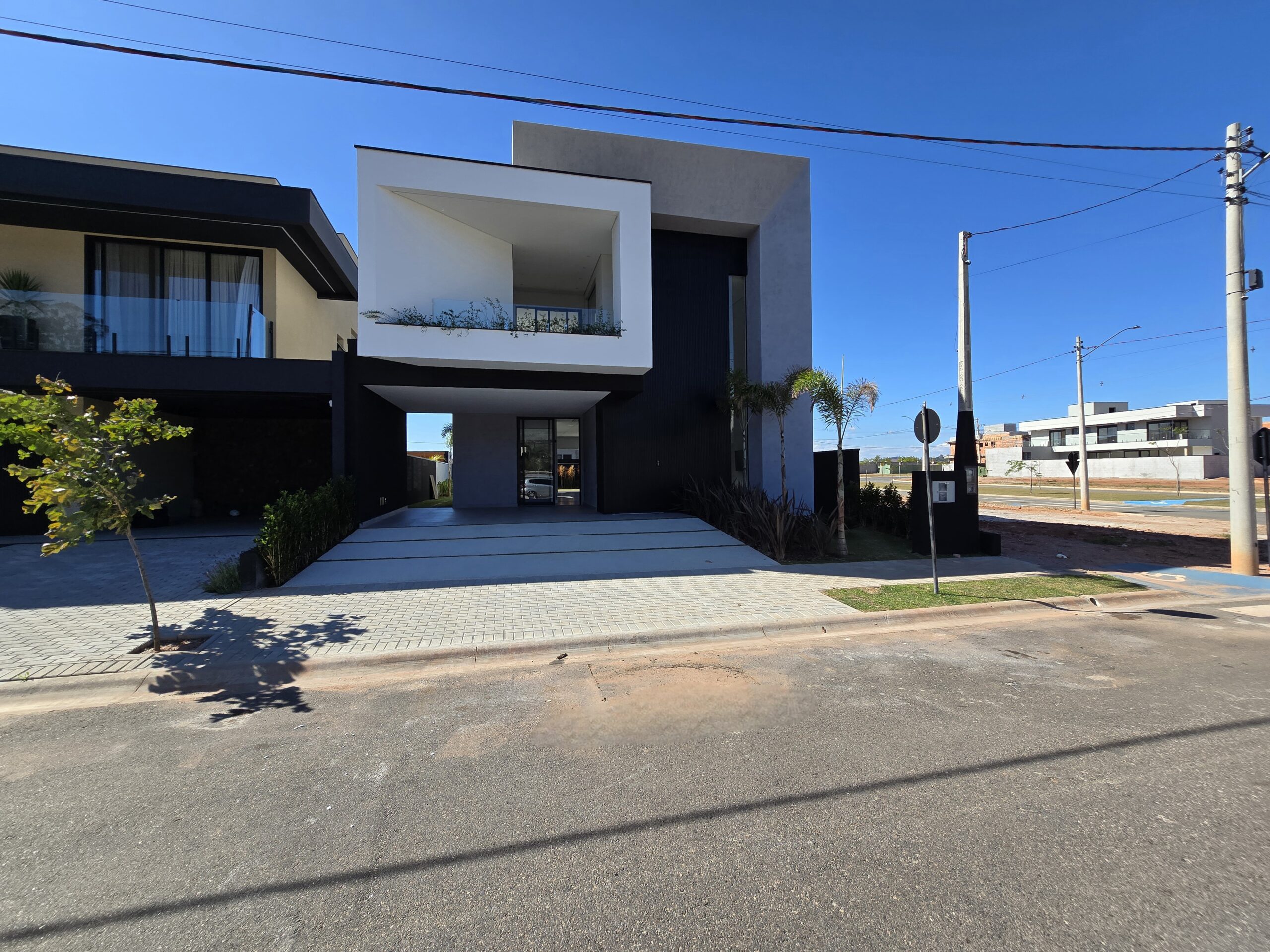 ✔️ Fachada contemporânea com varanda superior